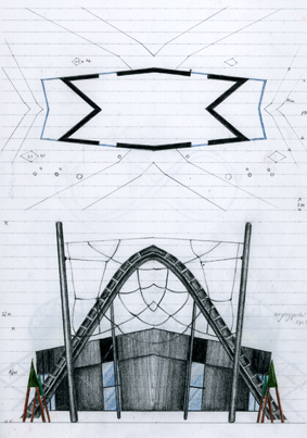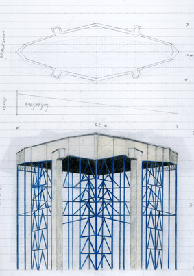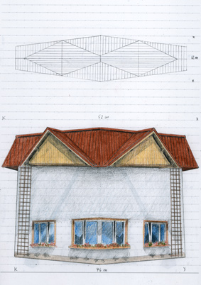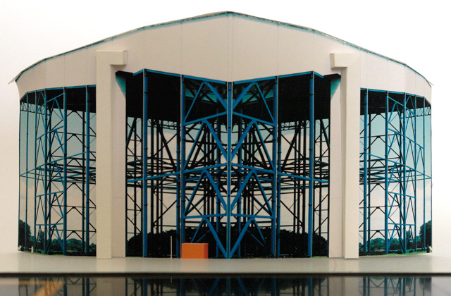 [photomontage, 70 x 100 cm, 40 x 60 cm, paper modell, 17 x 5 x 9 cm, video animation: 3'32",
