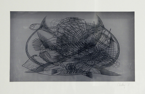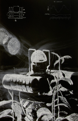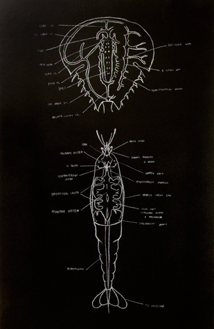 Diasandwiches: variable Projektionsgröße, 7 Kreidezeichnungen auf Schiefertafeln