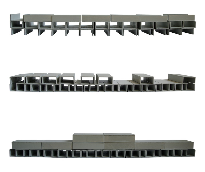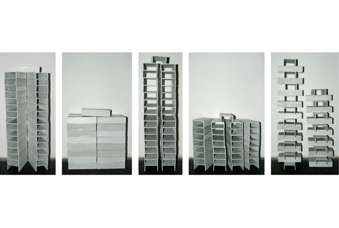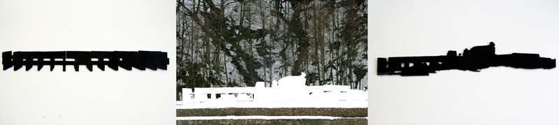 [Medien: Mittelformat- & Digitalfotografien, Dyptichen, 2 Tryptichen, Holzstabobjekt, 33 Holzmodule]