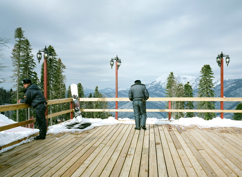 As a counterpart to the completed project "Luxury tourism - incognito" (2010), I explored the ski tourism and construction boom of the Winter Olympics 2014th in Sochi, Krasnaya Polyana. I was "disguised" as a traditional winter tourist and had an untroubled view of the behavior of the winter tourists, the police, the supervision personnel and the workers on site. Beyond the “soft power” i was interested in the research of the architectural interventions (infrastructures, hotels) and the inter-ventions and invasions in the nature to build up the “Olympia-infrastructure” (slopes, ski piste, jump) in Sochi and Krasnaya Polyana/Estosadok.