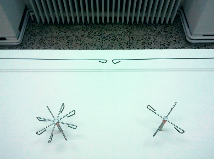 [objects in steel: 38 x 10 x 6 cm, 10 x 10 x 6 cm, photomontage]